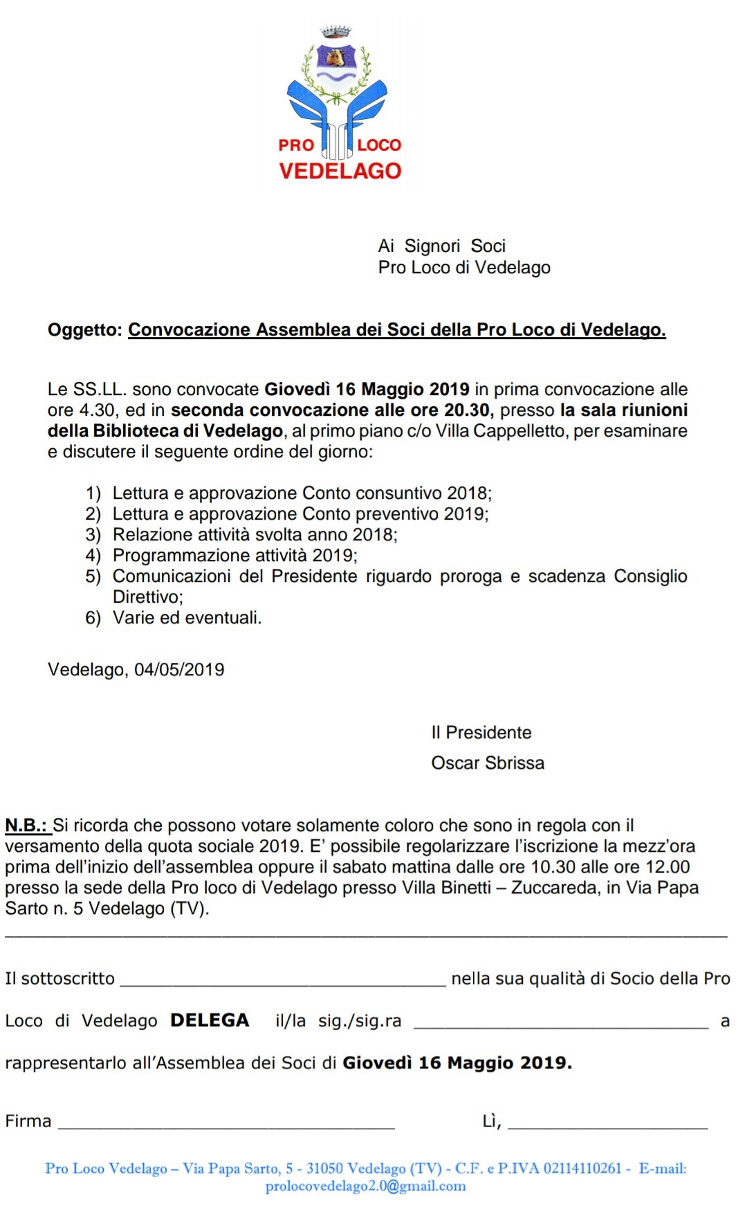 Convocazione soci tesserati 2019